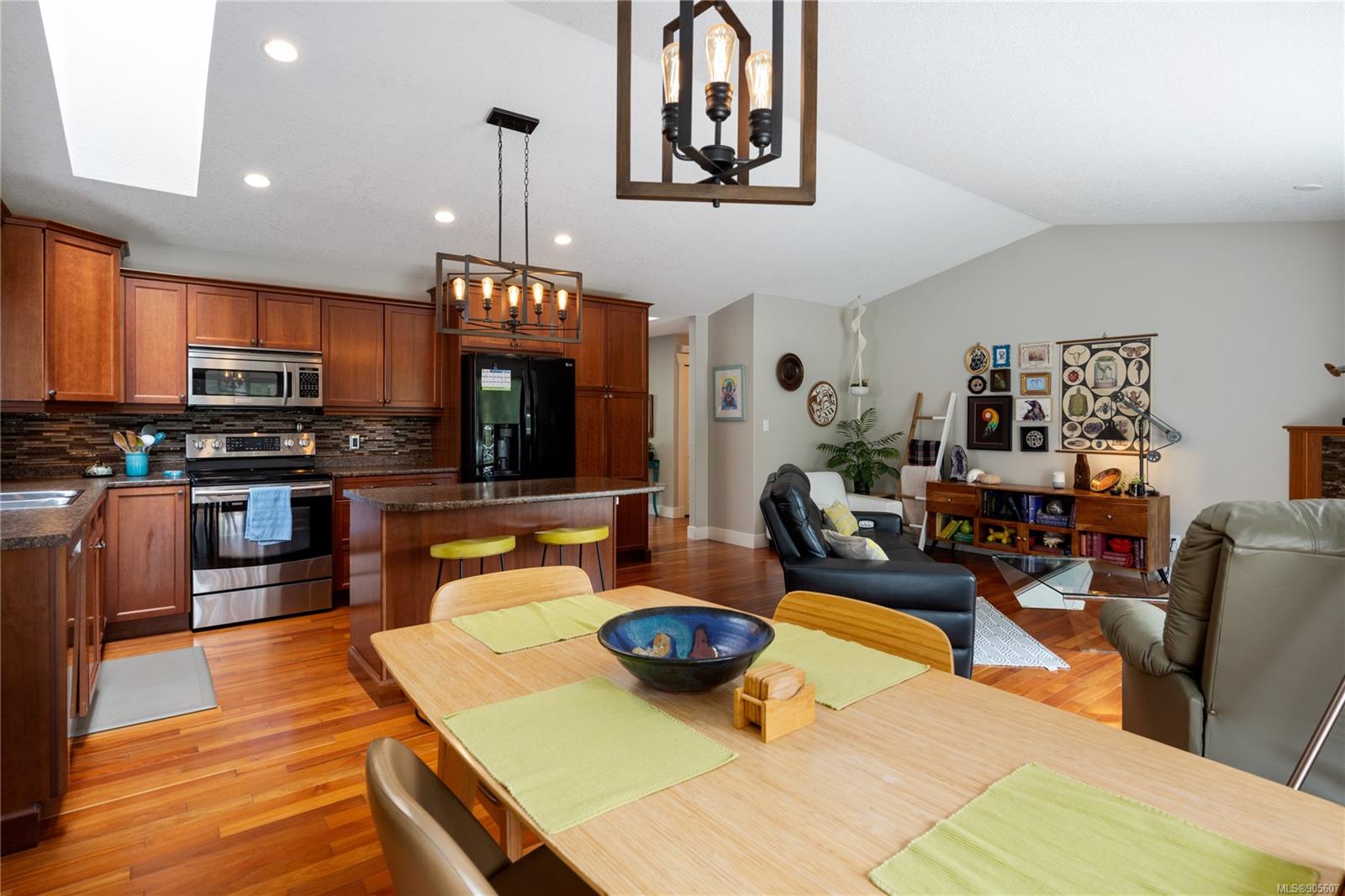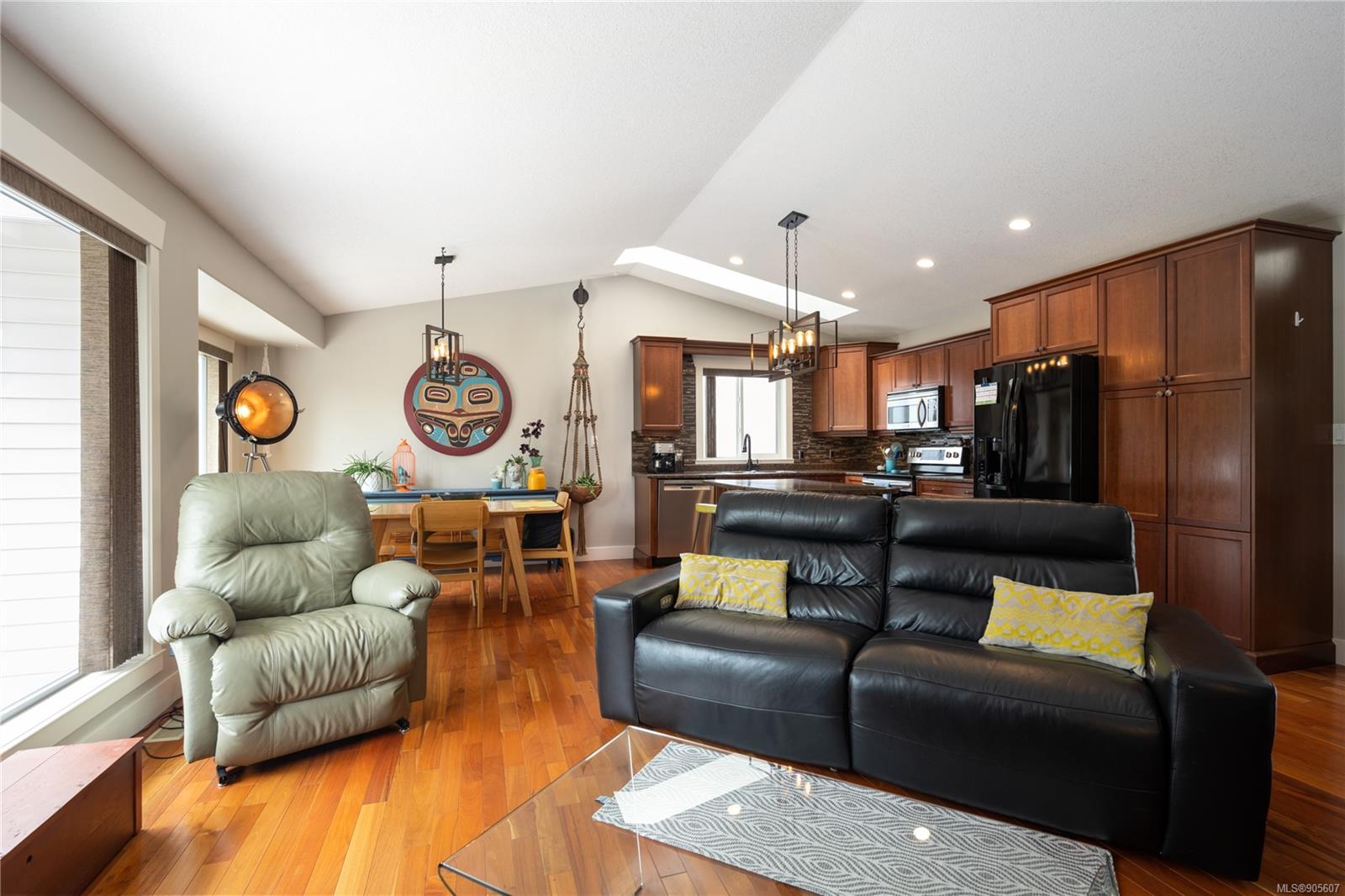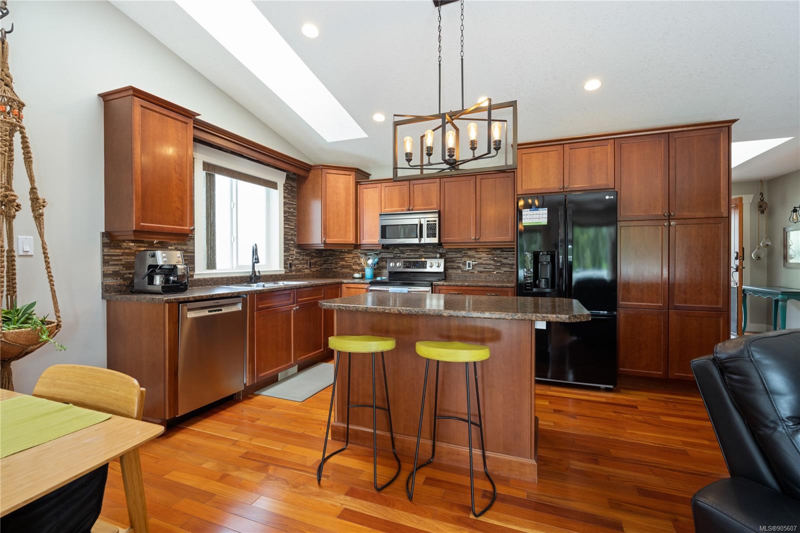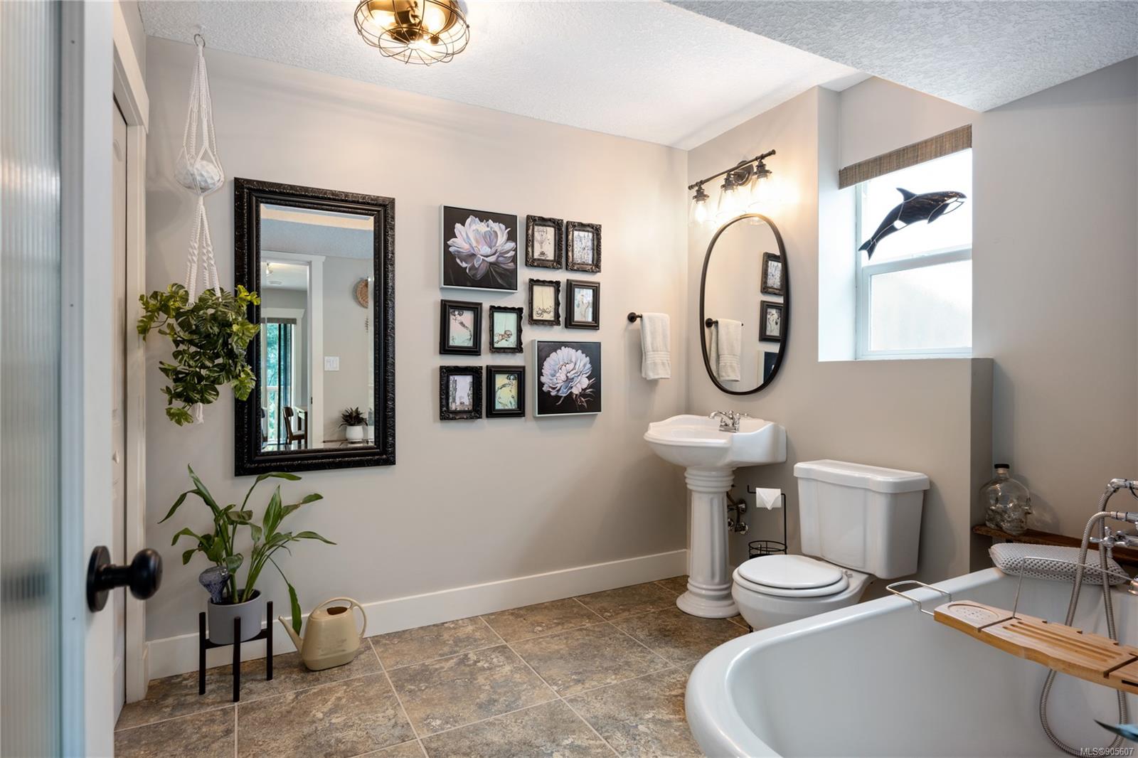 This finely appointed level entry residence backs onto a bird sanctuary and is steps from Coal Tyee Elementary School. The home has a great floor plan with a self-contained, legal 1 bedroom suite on the walkout basement level. The main level features an open concept living room, dining room and kitchen with 9ft vaulted ceilings, skylights, hardwood floors and a gas fireplace. The Primary bedroom is tucked away and has a gorgeous 3pc ensuite and a walk in closet. A second bedroom, bathroom and laundry on this level allows for single level living if desired. On the lower level you’ll find a massive family room, large bathroom with clawfoot tub and an additional bedroom. Outside there are two massive decks perfect for hosting BBQ’s while overlooking the park-like backyard with an irrigation system. All kept secure by an 8 camera security system.
