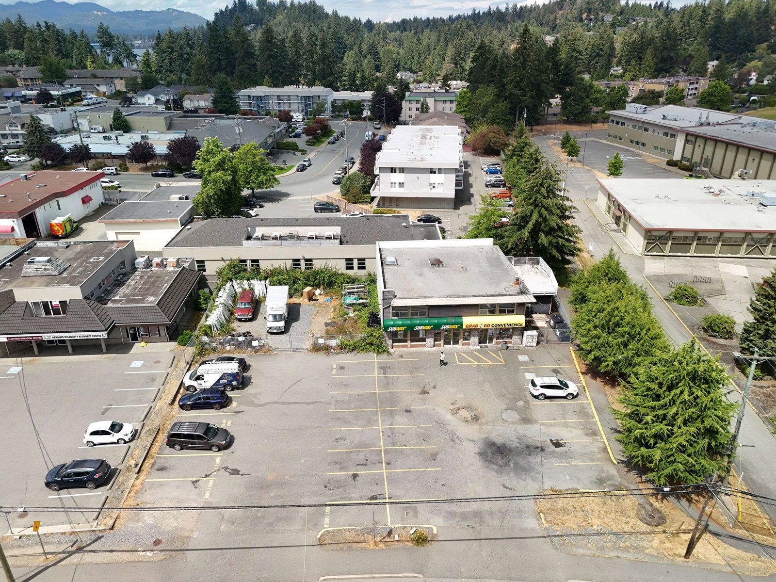 Welcome to 4146 & 4156 Departure Bay Rd, situated in the heart of central Nanaimo, BC! These two parcels totaling 16,991 sqft, are zoned COR2 which allows for mixed use, street orientated development along urban arterials and major collector roads. The two properties are currently leased with a revenue of $5405 per month (4146) and $500 per month (4156), for a total monthly revenue of $5905. 4146 Departure Bay features a 1,465sqft fast food store (currently Subway) with full kitchen, seating area and customer restroom. Additionally, there is a fully functional 1,035sqft store with 469sqft attached office space. The upper floor houses a spacious 2,969sqft apartment with 3 bedrooms and 2 bathrooms. Next door, bring your creative ideas to 4156 Departure Bay that is currently a storage yard that could be expanded upon. Located next to Wellington Secondary, and a short walk to Country Club Center, this property draws significant clientele from the bustling location alone. Don’t miss this lucrative opportunity to own this perfect investment property. All measurements are approximate and should be verified if important.