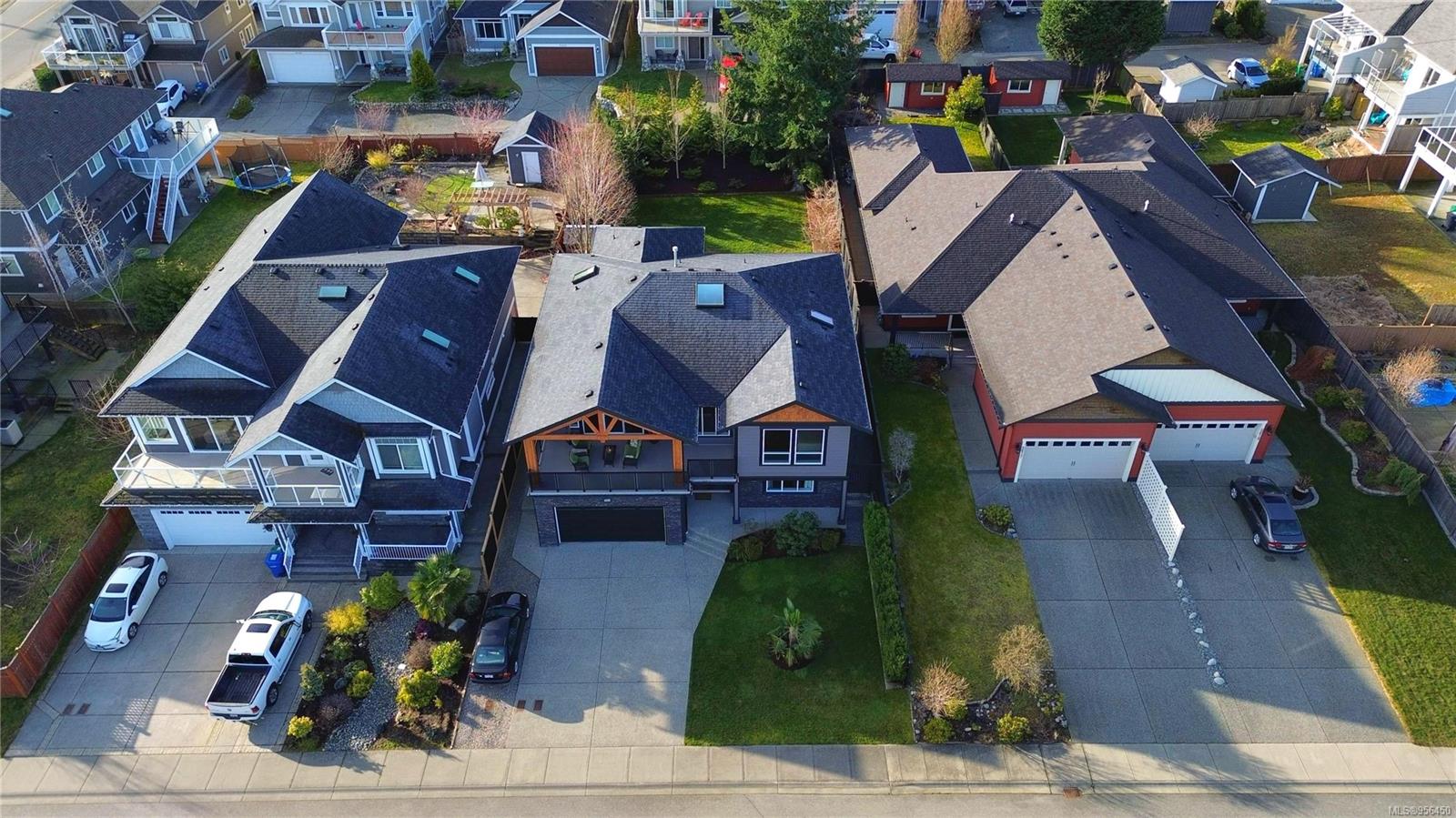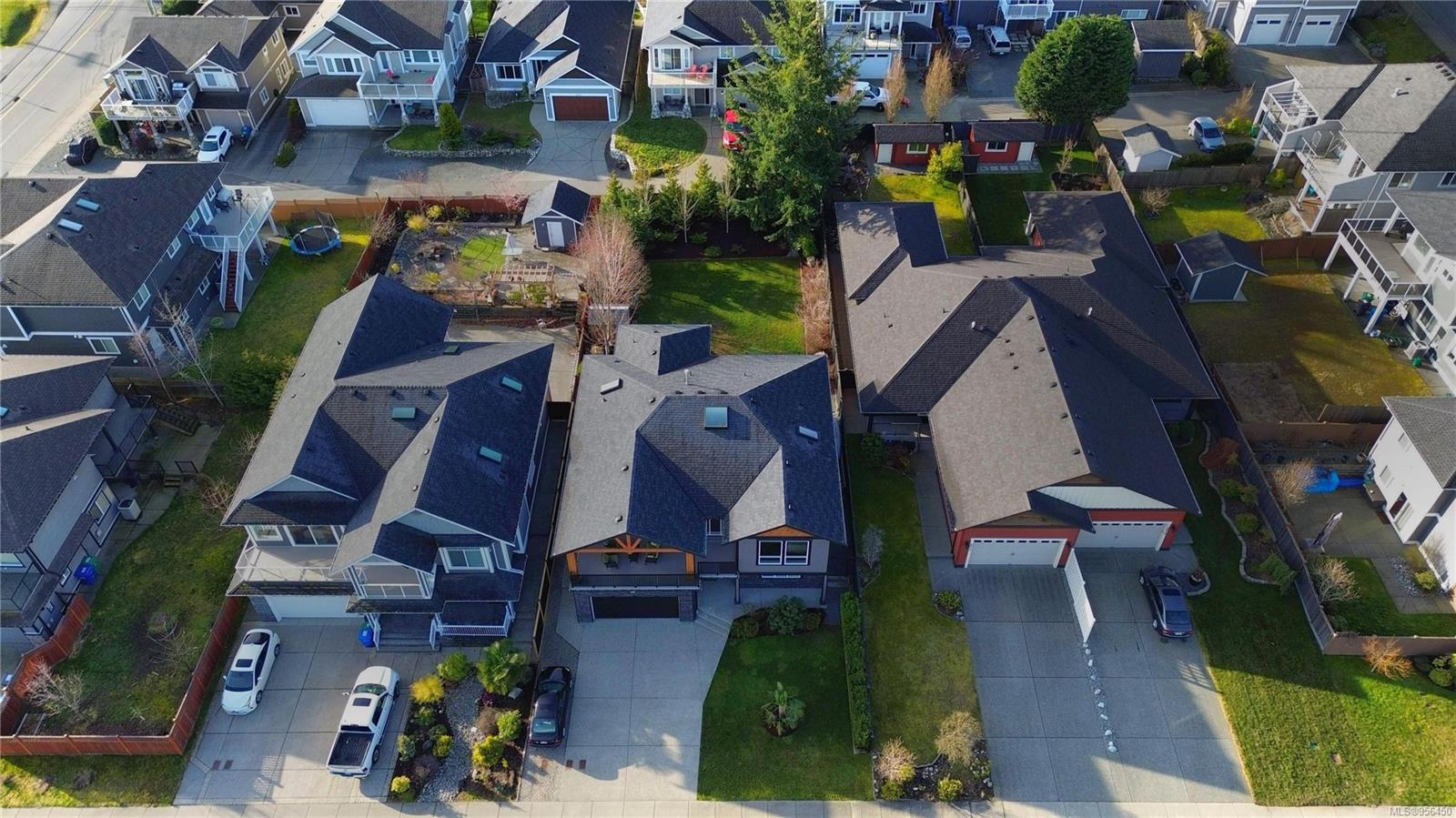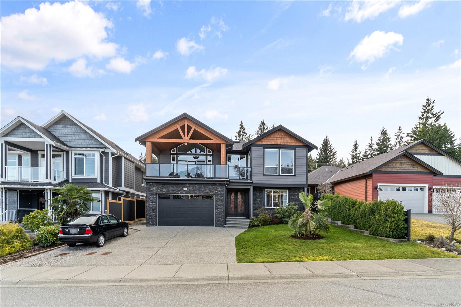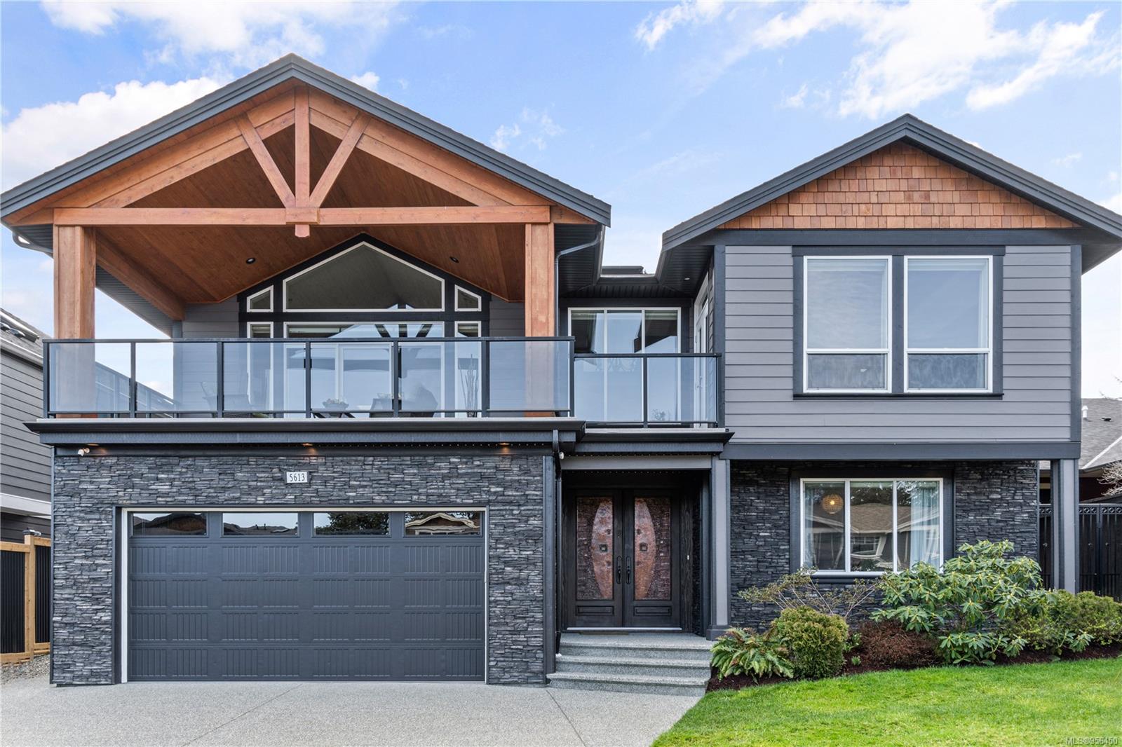 Custom built 6 bedroom, 4 bathroom 3546sqft family home featuring a 2 bedroom legal suite and with partial ocean, mountain views. The exterior of the home boasts a sleek and contemporary design, with large windows and skylights that allow for an abundance of natural light. Inside, the home offers a spacious and open concept floor plan with vaulted ceilings and premium finishes throughout. The main living area is the perfect space for entertaining, featuring a gourmet kitchen with custom cabinetry, quartz counters, a large center island, matching stainless appliances, gas cooktop, double wall oven and secondary kitchen. The adjacent open concept dining area and Great room provide ample space for spending quality time with loved ones or entertaining guests, with convenient access to the covered deck. The primary suite is spacious with coffered ceilings, a luxurious 5-piece ensuite and walk in closet. Two additional bedrooms and a 4-piece main bathroom complete the main floor. Descend to the lower floor and you will uncover a unique theater room with 108″ projection tv, built-in surround sound, wet bar and custom built ins. A bedroom or office, 4-piece bathroom, laundry room, storage and the 2 bedroom suite complete the home. The suite is wheel chair accessible, with it’s own private entrance, patio and laundry. Other features include a new dishwasher, newer commercial hot water tank, newer furnace, BBQ hookup on back deck and mature landscaping for the utmost privacy. Located at 5613 Westdale Rd, this property offers more than just a home; it offers a lifestyle perfect for families. Experience the best of North Nanaimo living through a short walk to the neighbourhood beach, park, transit & all levels of school (Rutherford Elementary School re-opening in 2025) along with convenient access to all other major amenities. This property offers the perfect blend of luxury, comfort, & functionality. All measurements are approximate and should be verified if deemed important.