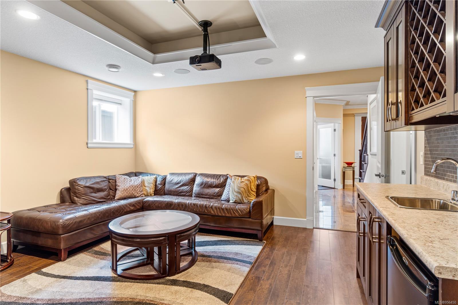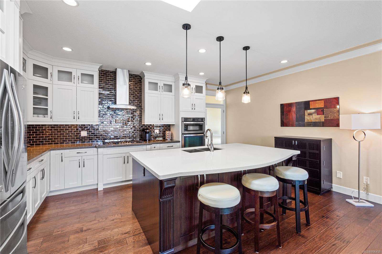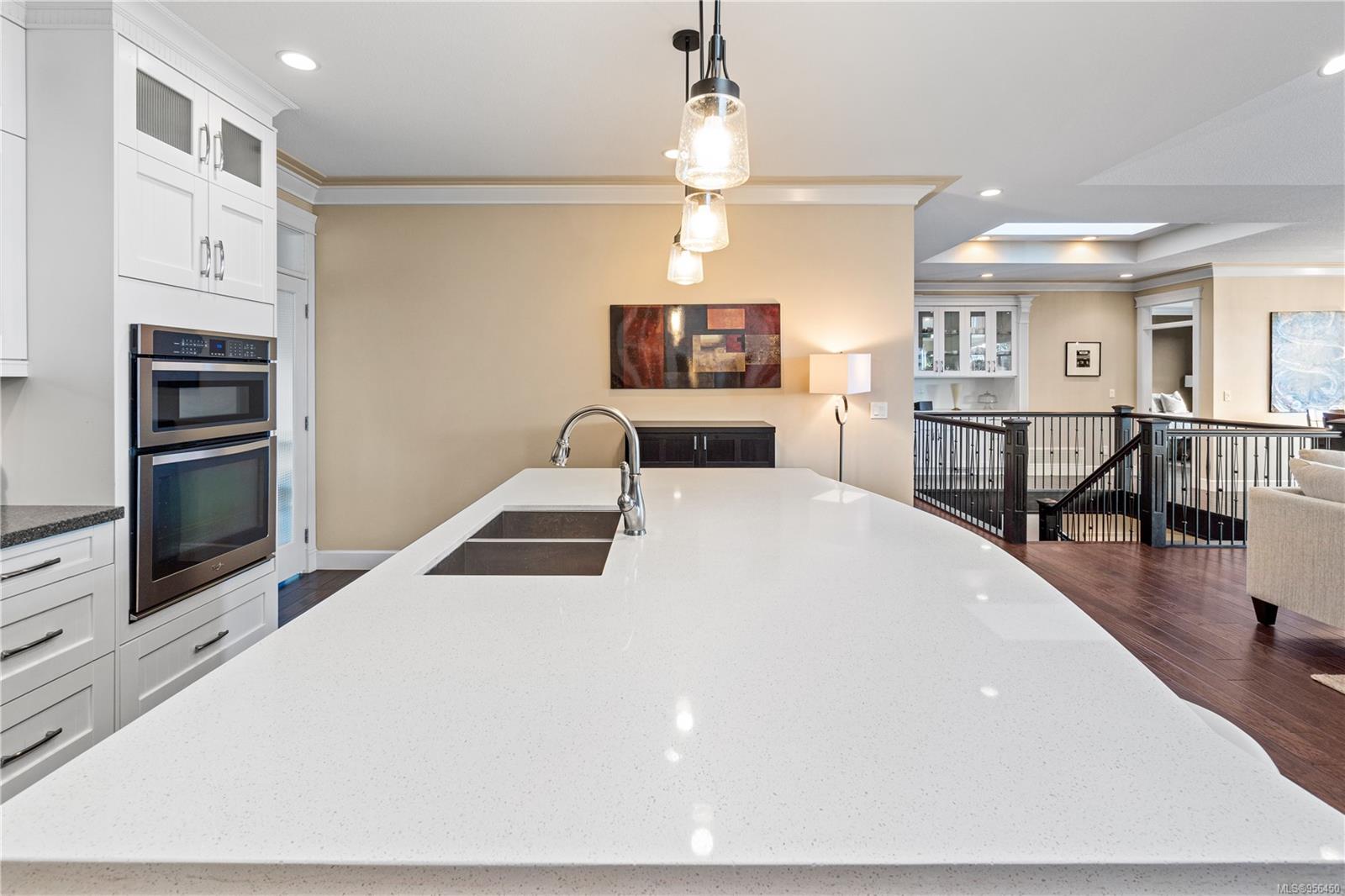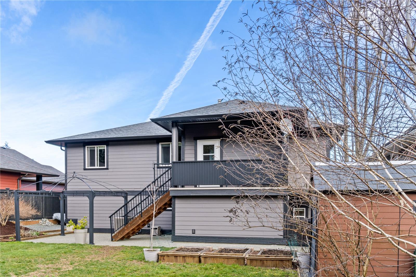 Custom built 6 bedroom, 4 bathroom 3546sqft family home featuring a 2 bedroom legal suite and with partial ocean, mountain views. The exterior of the home boasts a sleek and contemporary design, with large windows and skylights that allow for an abundance of natural light. Inside, the home offers a spacious and open concept floor plan with vaulted ceilings and premium finishes throughout. The main living area is the perfect space for entertaining, featuring a gourmet kitchen with custom cabinetry, quartz counters, a large center island, matching stainless appliances, gas cooktop, double wall oven and secondary kitchen. The adjacent open concept dining area and Great room provide ample space for spending quality time with loved ones or entertaining guests, with convenient access to the covered deck. The primary suite is spacious with coffered ceilings, a luxurious 5-piece ensuite and walk in closet. Two additional bedrooms and a 4-piece main bathroom complete the main floor. Descend to the lower floor and you will uncover a unique theater room with 108″ projection tv, built-in surround sound, wet bar and custom built ins. A bedroom or office, 4-piece bathroom, laundry room, storage and the 2 bedroom suite complete the home. The suite is wheel chair accessible, with it’s own private entrance, patio and laundry. Other features include a new dishwasher, newer commercial hot water tank, newer furnace, BBQ hookup on back deck and mature landscaping for the utmost privacy. Located at 5613 Westdale Rd, this property offers more than just a home; it offers a lifestyle perfect for families. Experience the best of North Nanaimo living through a short walk to the neighbourhood beach, park, transit & all levels of school (Rutherford Elementary School re-opening in 2025) along with convenient access to all other major amenities. This property offers the perfect blend of luxury, comfort, & functionality. All measurements are approximate and should be verified if deemed important.