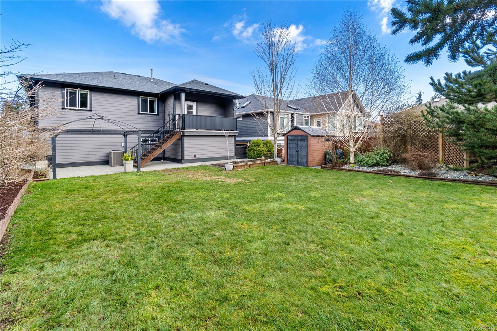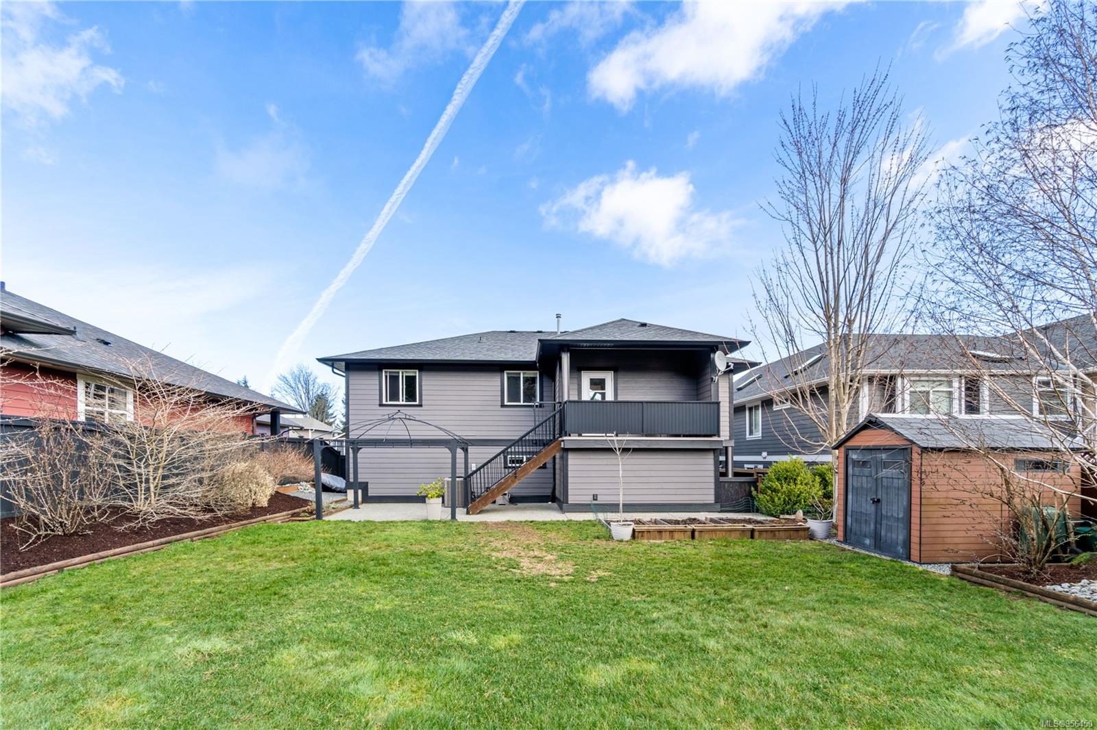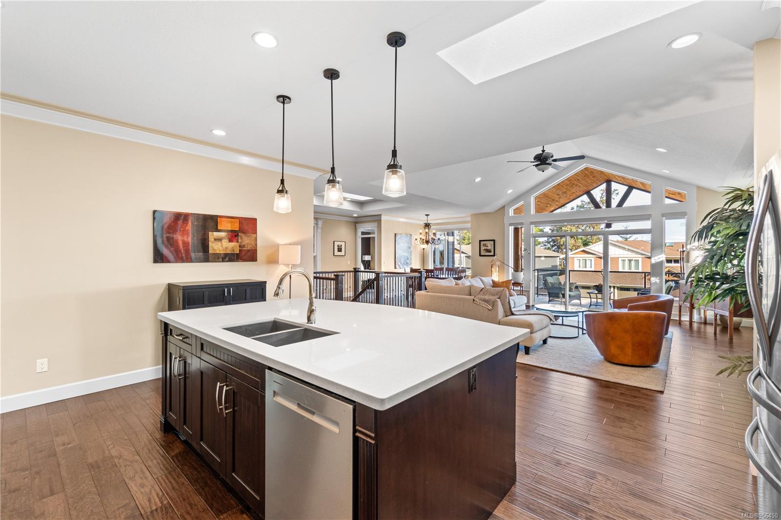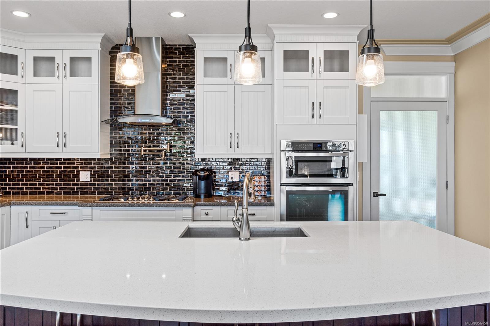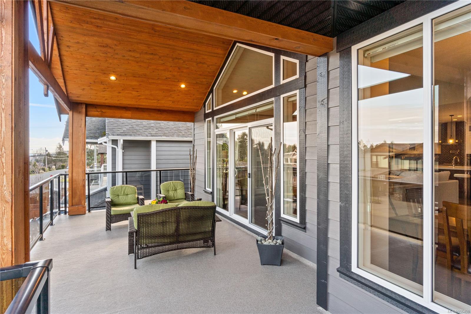 Custom built 6 bedroom, 4 bathroom 3546sqft family home featuring a 2 bedroom legal suite and with partial ocean, mountain views. The exterior of the home boasts a sleek and contemporary design, with large windows and skylights that allow for an abundance of natural light. Inside, the home offers a spacious and open concept floor plan with vaulted ceilings and premium finishes throughout. The main living area is the perfect space for entertaining, featuring a gourmet kitchen with custom cabinetry, quartz counters, a large center island, matching stainless appliances, gas cooktop, double wall oven and secondary kitchen. The adjacent open concept dining area and Great room provide ample space for spending quality time with loved ones or entertaining guests, with convenient access to the covered deck. The primary suite is spacious with coffered ceilings, a luxurious 5-piece ensuite and walk in closet. Two additional bedrooms and a 4-piece main bathroom complete the main floor. Descend to the lower floor and you will uncover a unique theater room with 108″ projection tv, built-in surround sound, wet bar and custom built ins. A bedroom or office, 4-piece bathroom, laundry room, storage and the 2 bedroom suite complete the home. The suite is wheel chair accessible, with it’s own private entrance, patio and laundry. Other features include a new dishwasher, newer commercial hot water tank, newer furnace, BBQ hookup on back deck and mature landscaping for the utmost privacy. Located at 5613 Westdale Rd, this property offers more than just a home; it offers a lifestyle perfect for families. Experience the best of North Nanaimo living through a short walk to the neighbourhood beach, park, transit & all levels of school (Rutherford Elementary School re-opening in 2025) along with convenient access to all other major amenities. This property offers the perfect blend of luxury, comfort, & functionality. All measurements are approximate and should be verified if deemed important.