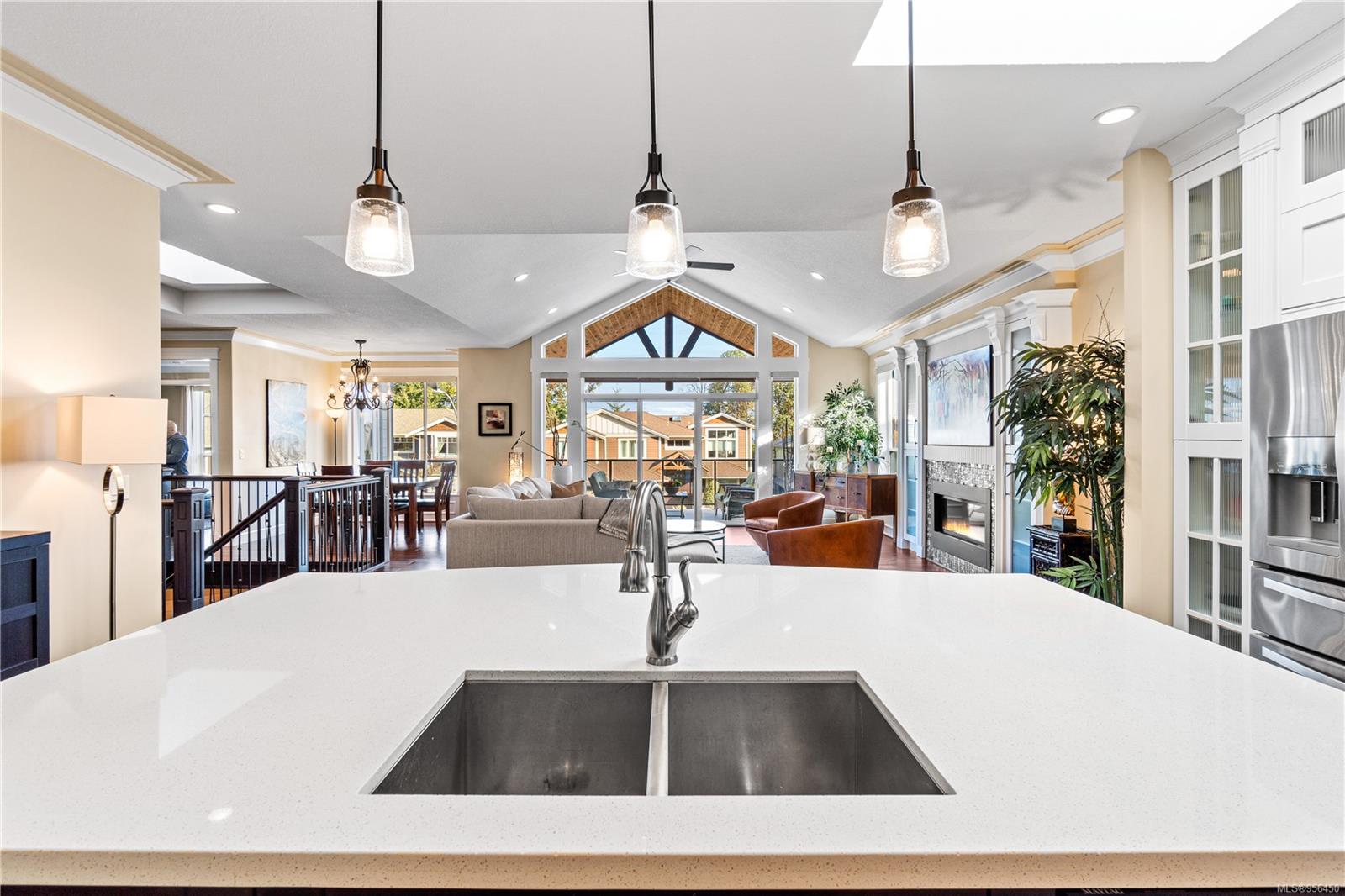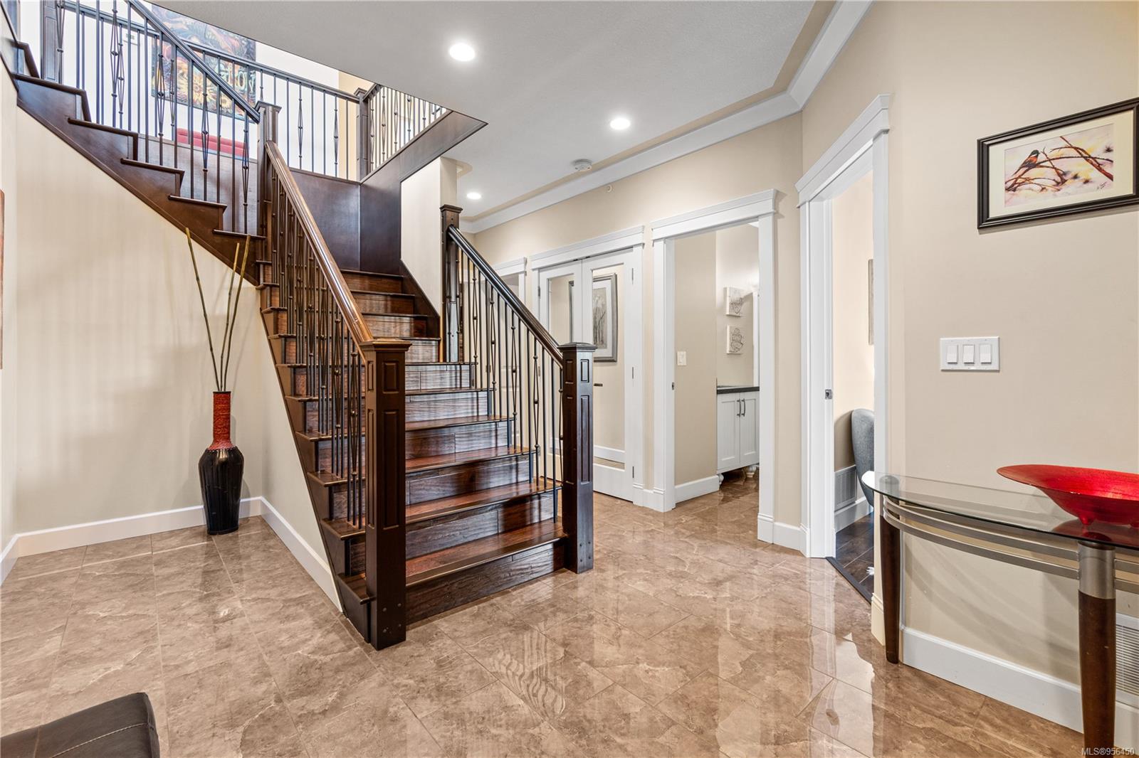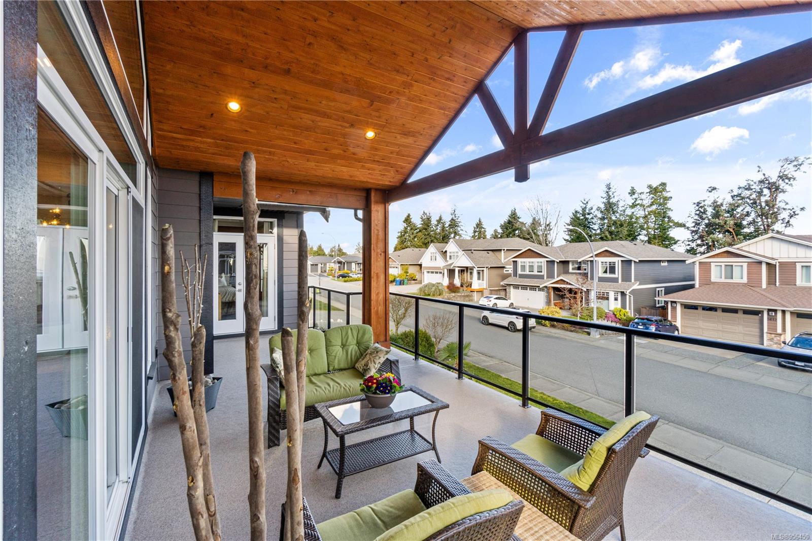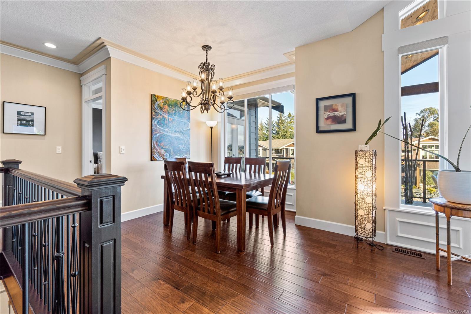Custom built 6 bedroom, 4 bathroom 3546sqft family home featuring a 2 bedroom legal suite and with partial ocean, mountain views. The exterior of the home boasts a sleek and contemporary design, with large windows and skylights that allow for an abundance of natural light. Inside, the home offers a spacious and open concept floor plan with vaulted ceilings and premium finishes throughout. The main living area is the perfect space for entertaining, featuring a gourmet kitchen with custom cabinetry, quartz counters, a large center island, matching stainless appliances, gas cooktop, double wall oven and secondary kitchen. The adjacent open concept dining area and Great room provide ample space for spending quality time with loved ones or entertaining guests, with convenient access to the covered deck. The primary suite is spacious with coffered ceilings, a luxurious 5-piece ensuite and walk in closet. Two additional bedrooms and a 4-piece main bathroom complete the main floor. Descend to the lower floor and you will uncover a unique theater room with 108″ projection tv, built-in surround sound, wet bar and custom built ins. A bedroom or office, 4-piece bathroom, laundry room, storage and the 2 bedroom suite complete the home. The suite is wheel chair accessible, with it’s own private entrance, patio and laundry. Other features include a new dishwasher, newer commercial hot water tank, newer furnace, BBQ hookup on back deck and mature landscaping for the utmost privacy. Located at 5613 Westdale Rd, this property offers more than just a home; it offers a lifestyle perfect for families. Experience the best of North Nanaimo living through a short walk to the neighbourhood beach, park, transit & all levels of school (Rutherford Elementary School re-opening in 2025) along with convenient access to all other major amenities. This property offers the perfect blend of luxury, comfort, & functionality. All measurements are approximate and should be verified if deemed important.