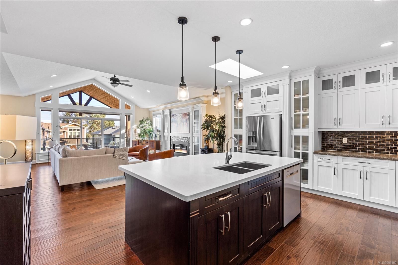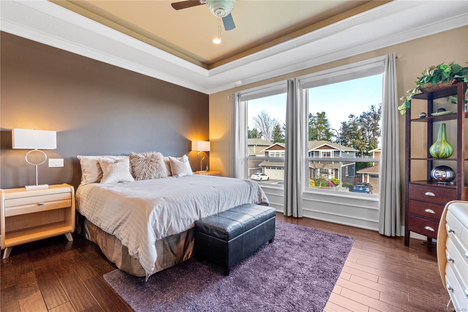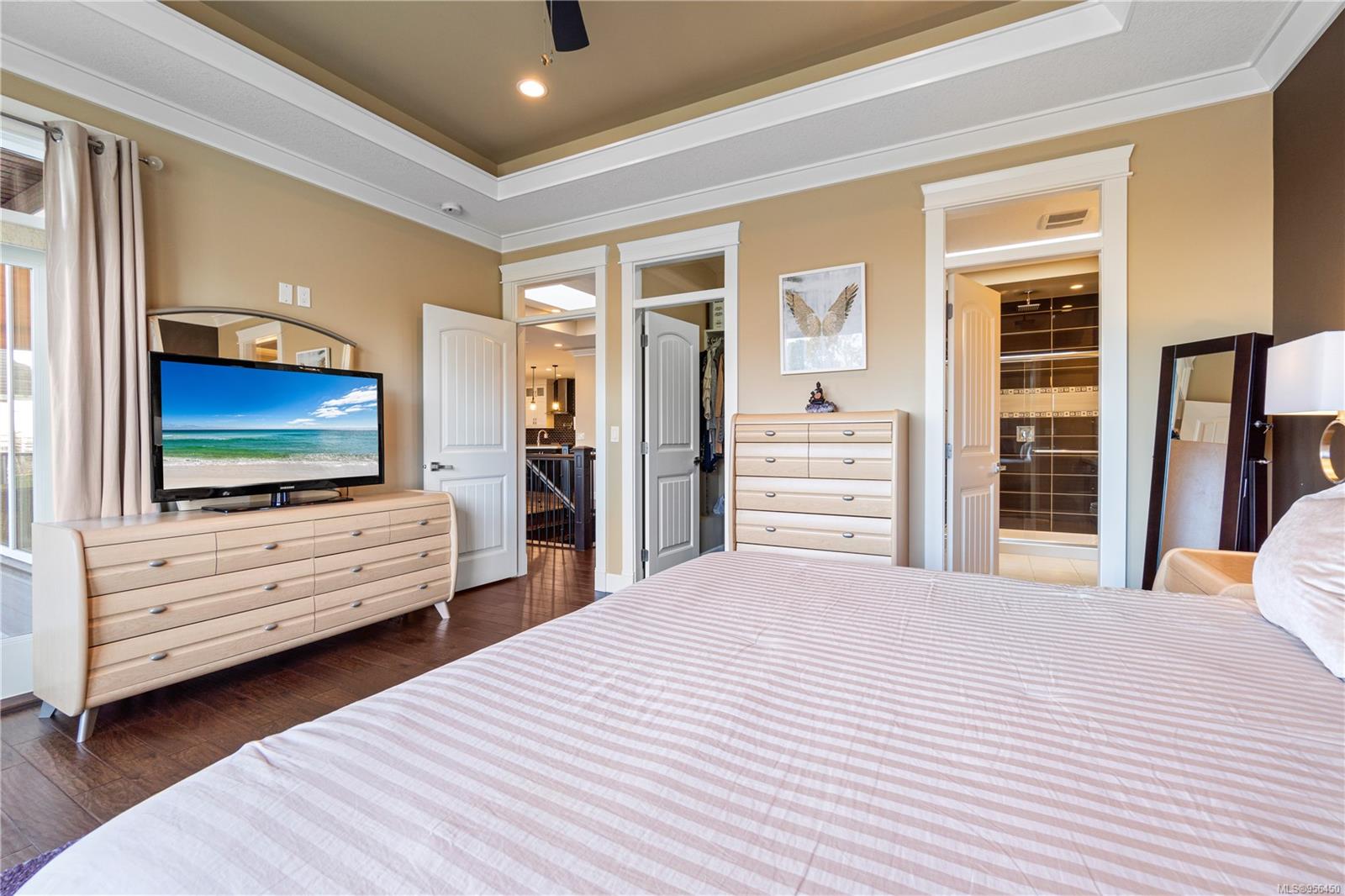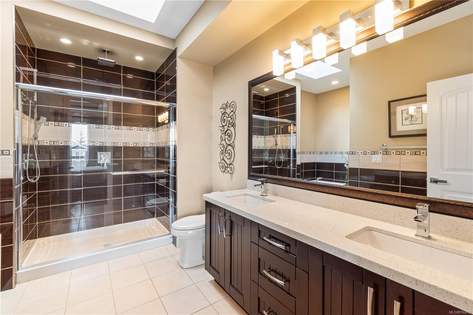 Custom built 6 bedroom, 4 bathroom 3546sqft family home featuring a 2 bedroom legal suite and with partial ocean, mountain views. The exterior of the home boasts a sleek and contemporary design, with large windows and skylights that allow for an abundance of natural light. Inside, the home offers a spacious and open concept floor plan with vaulted ceilings and premium finishes throughout. The main living area is the perfect space for entertaining, featuring a gourmet kitchen with custom cabinetry, quartz counters, a large center island, matching stainless appliances, gas cooktop, double wall oven and secondary kitchen. The adjacent open concept dining area and Great room provide ample space for spending quality time with loved ones or entertaining guests, with convenient access to the covered deck. The primary suite is spacious with coffered ceilings, a luxurious 5-piece ensuite and walk in closet. Two additional bedrooms and a 4-piece main bathroom complete the main floor. Descend to the lower floor and you will uncover a unique theater room with 108″ projection tv, built-in surround sound, wet bar and custom built ins. A bedroom or office, 4-piece bathroom, laundry room, storage and the 2 bedroom suite complete the home. The suite is wheel chair accessible, with it’s own private entrance, patio and laundry. Other features include a new dishwasher, newer commercial hot water tank, newer furnace, BBQ hookup on back deck and mature landscaping for the utmost privacy. Located at 5613 Westdale Rd, this property offers more than just a home; it offers a lifestyle perfect for families. Experience the best of North Nanaimo living through a short walk to the neighbourhood beach, park, transit & all levels of school (Rutherford Elementary School re-opening in 2025) along with convenient access to all other major amenities. This property offers the perfect blend of luxury, comfort, & functionality. All measurements are approximate and should be verified if deemed important.