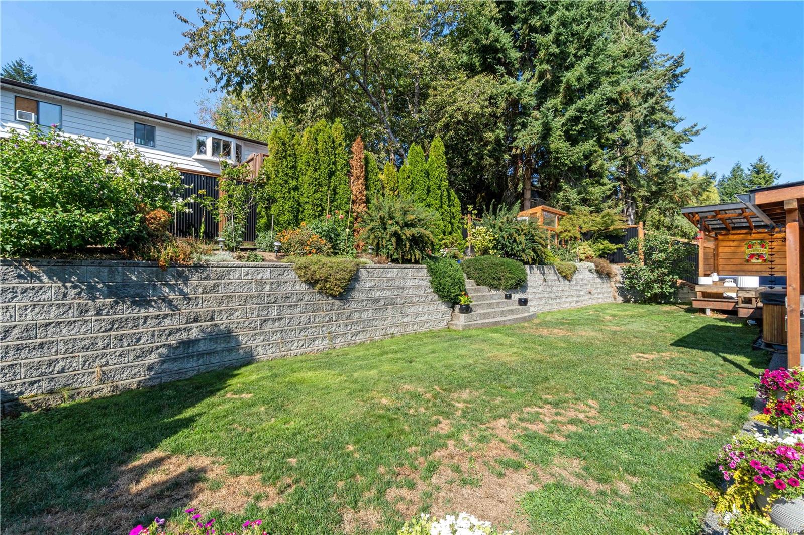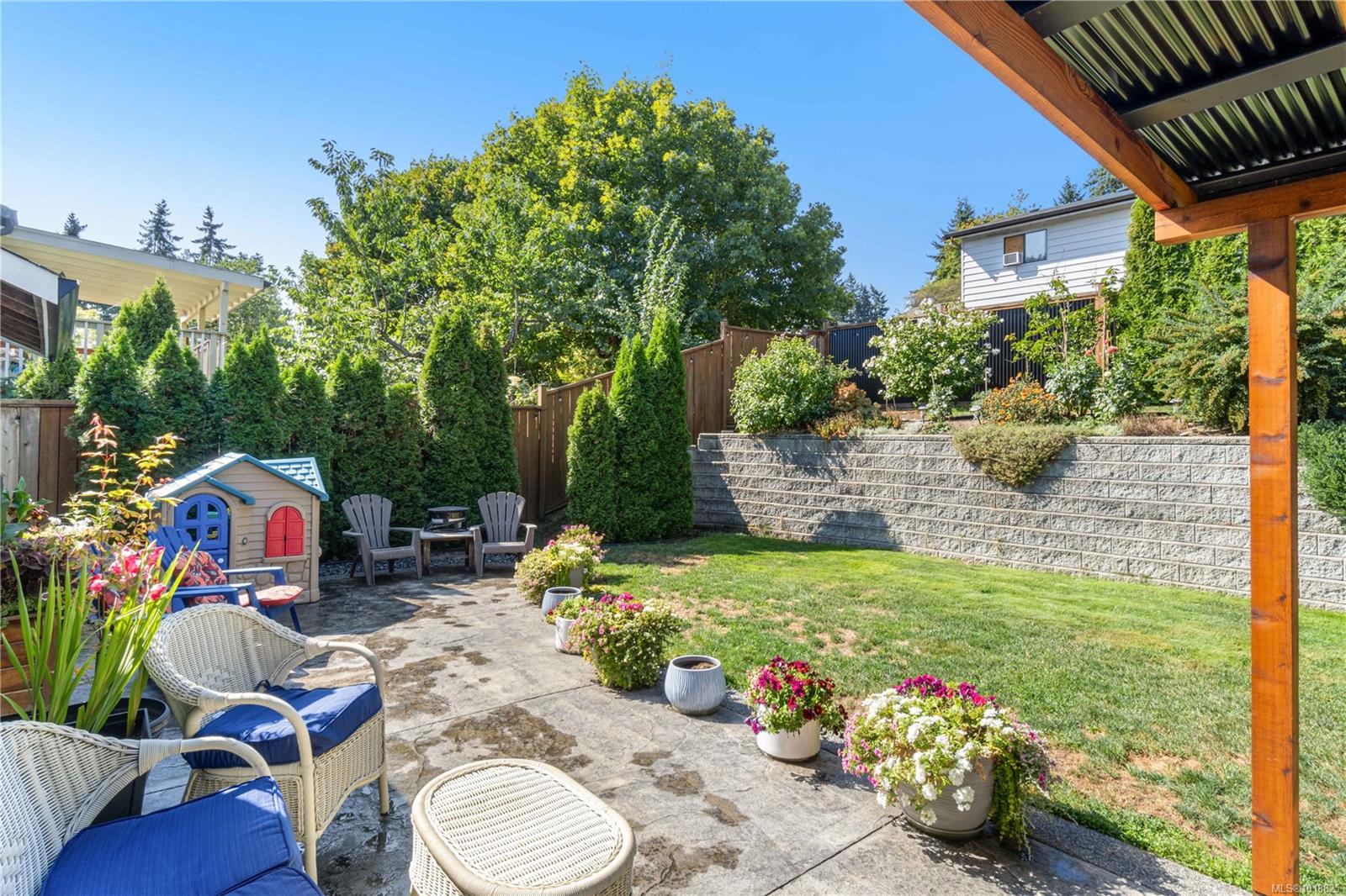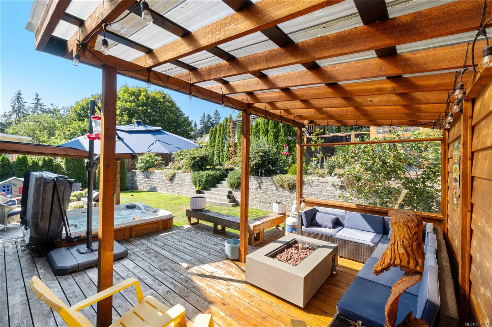 The outdoor space has a beautifully landscaped yard which provides plenty of room for entertaining, gardening, or relaxing in privacy. The addition of the covered area makes the backyard enjoyable year-round, whether it’s summer evenings with friends or quiet winter nights under the stars. The yard is both inviting and functional, creating a space that can be used in every season.
